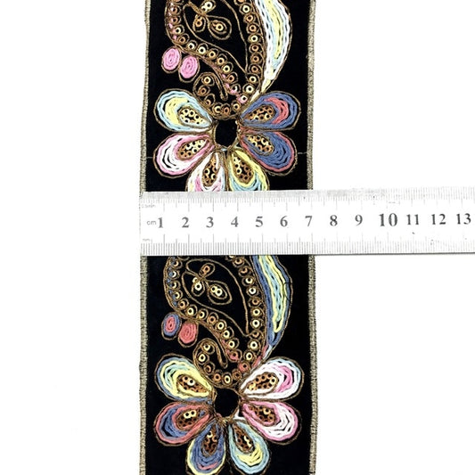 1 Yard Sequin Lace Trims Floral Ribbon